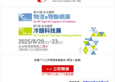 Events 2025 Taipei International Logistics & IoT Exhibition Date: Aug 20, 2025~Aug23, 2025 / Location: Taipei Nangang Exhibition Center, Hall 2